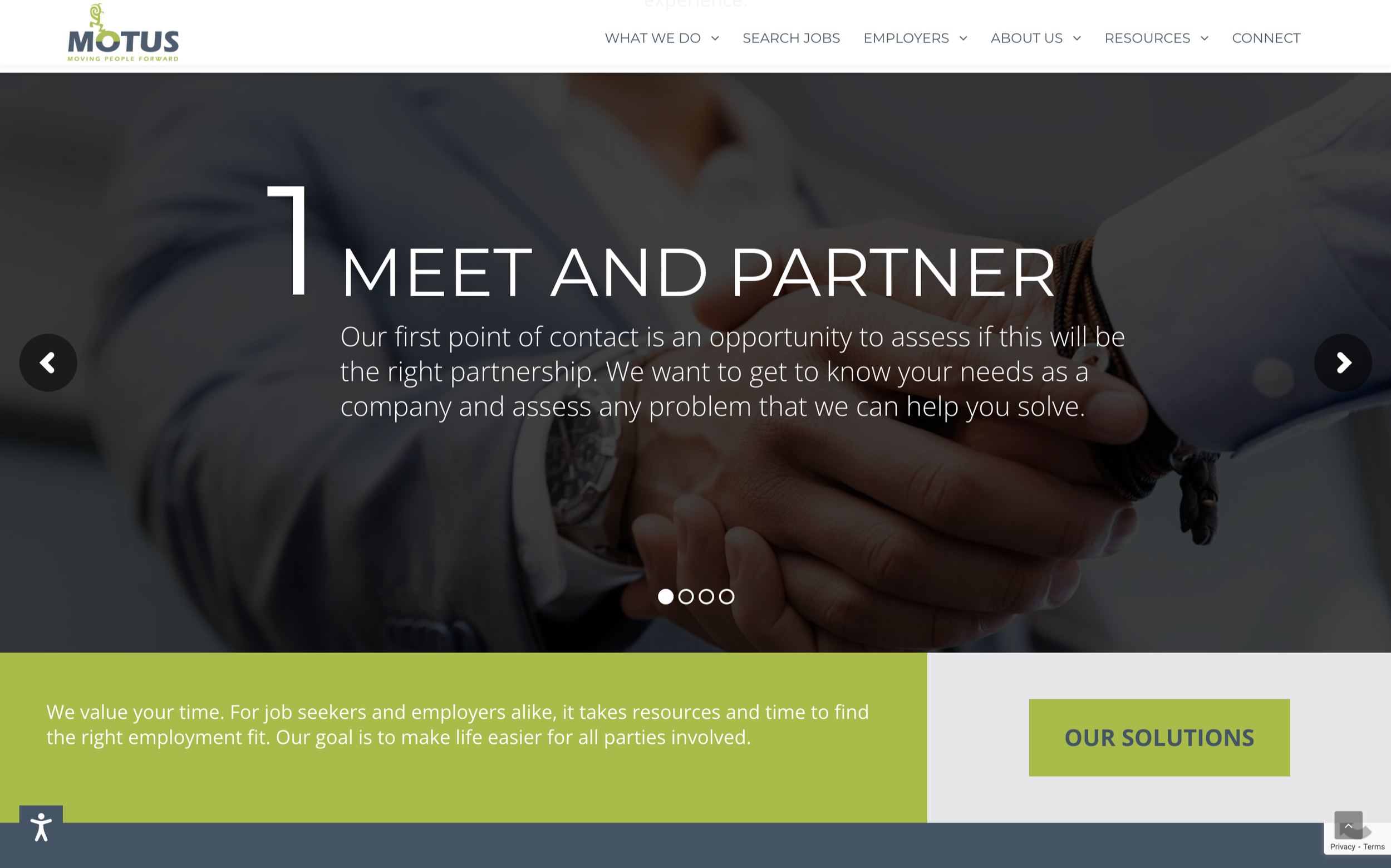 At Motus Recruiting and Staffing, I reimagined and rebuilt the website architecture, managed the developer, and delivered a scalable, multi-page site that is still in use years later. The website redesign supported revenue growth and helped secure an enterprise contract with Portland General Electric (PGE), a leading Oregon utility provider.