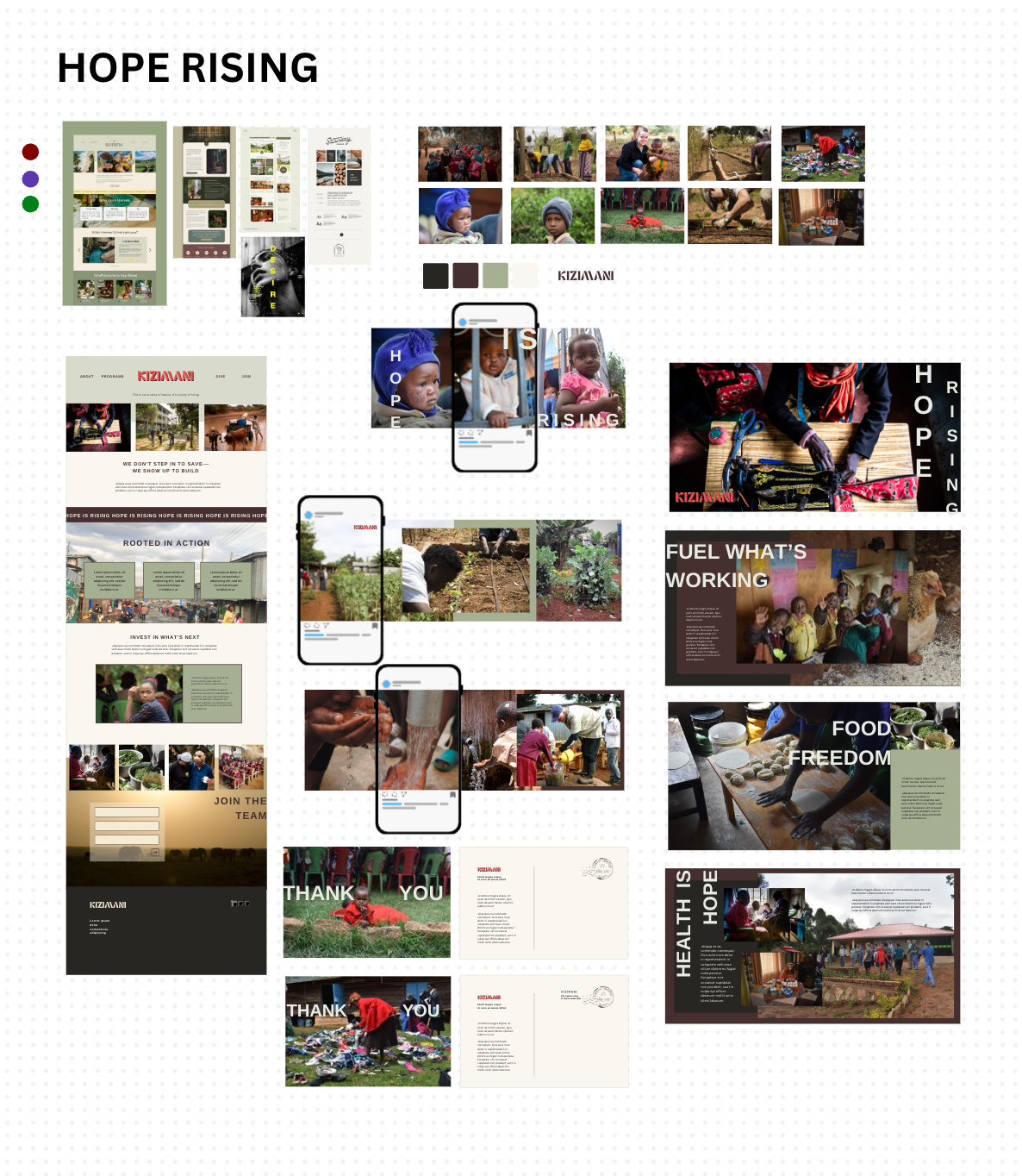For Kizimani, I conducted a full brand discovery process rooted in stakeholder interviews and narrative refinement. From that foundation, I developed multiple visual identity directions and structured storytelling systems that expressed Kizimani’s mission and vision in unique and authentic ways. The work established scalable brand framework options to support the organization’s next phase of growth.